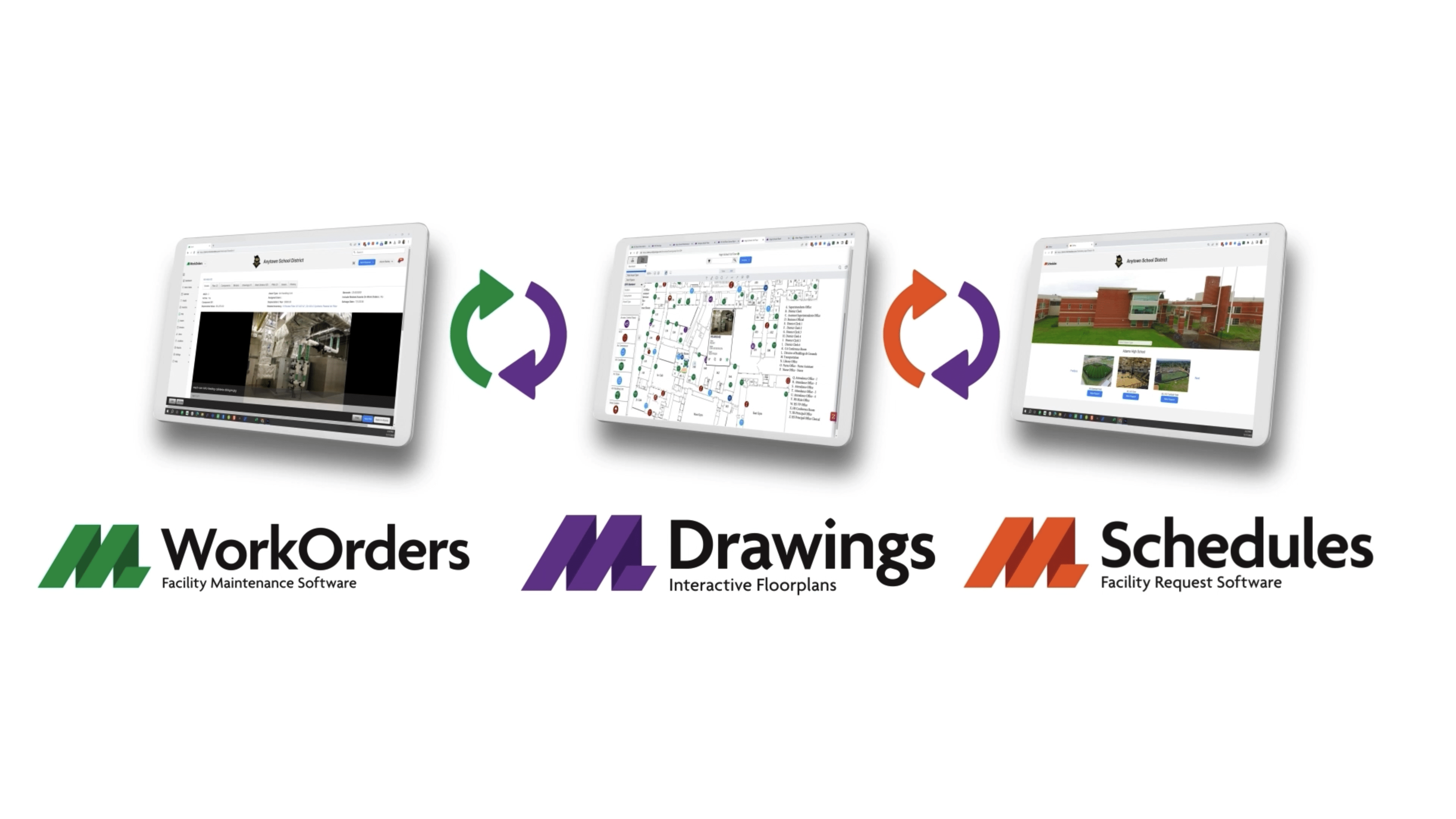 - Software for event scheduling, facilities and IT work orders (including help desks), asset management, capital planning, and more. All software operates on a common platform that provides real-time data synchronization across all software titles.